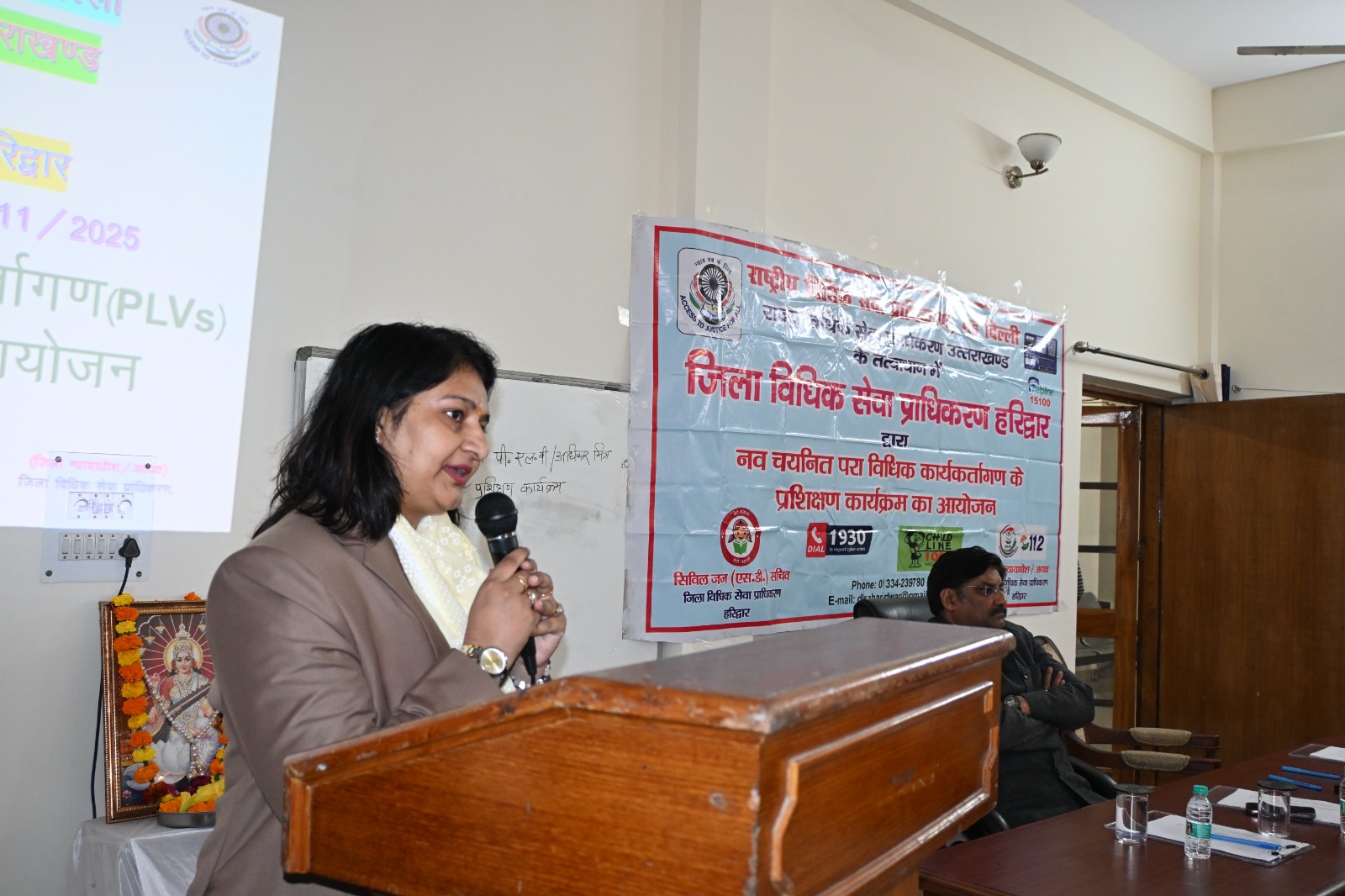 हरिद्वार, 20 नवम्बर। जिला विधिक सेवा प्राधिकरण, रोशनाबाद में नव-नियुक्त पैरा लीगल वॉलंटियर्स/अधिकार मित्रों के लिए दो दिवसीय प्रशिक्षण कार्यक्रम का शुभारंभ गुरुवार को किया गया। यह प्रशिक्षण नालसा के Rule, Regulation & Scheme (Revised) for Training of PLVs के तहत आयोजित किया जा रहा है।